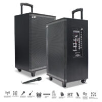- Bafle amplificado profesional con bluetooth, puerto auxiliar, y lector de memorias usb y micro sd.