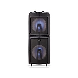 - Woofer doble de 12 pulgadas (30.48 cm) con conexión doble de bluetooth; de alcance 10 mts.